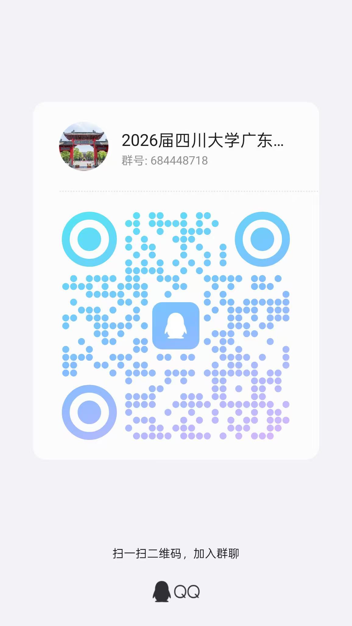 为了方便后续相关事宜的通知,请有意向报考广东选调的同学加入2026届四川大学广东省选调qq群684448718